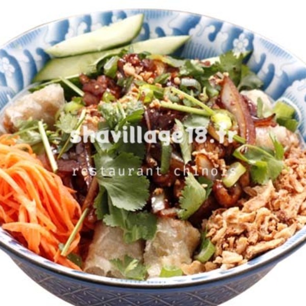 (feuille salade, vermicelles froid, carottes mariné, concombre, Crevettes, menthe, coriandre, enroulé dans galette de riz)